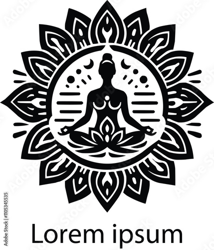 Fototapeta premium Yoga meditation Logo vector vintage icon.
