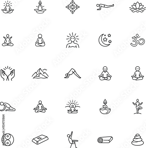 Fototapeta premium Yoga, Meditation, Mindfulness, Spiritual, Wellness, Icons, Symbols, Asanas, Serenity, Peace