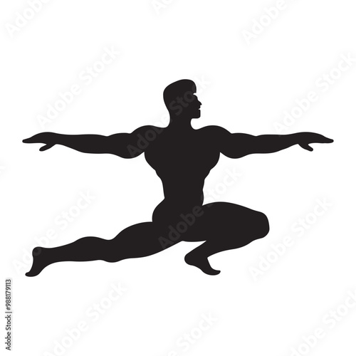 © Azadur, Naklejka premium Yoga pose man silhouette vector art illustration isolated on white background.