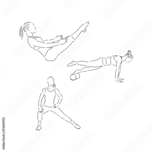 Obraz premium Yoga poses, yoga pants, yoga poses, vector sketch illustration