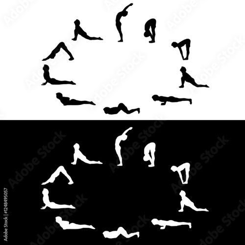 Obraz premium yoga silhouettes vector. Strength and balance, Surya Namaskar