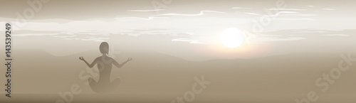 Obraz premium Yoga Sport Fitness Woman Exercise Workout Silhouettes Girl Sunset Background Vector Illustration