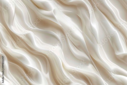 © WaxWing_Ai, Fototapeta premium Yogurt, cream or silk seamless texture. Liquid white paint wavy flow pattern background. Dairy product, textile or cosmetic design template.