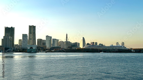 © JuanCarlos, Fototapeta premium Yokohama skyline with a body of water in the foreground