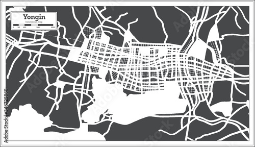 © BooblGum, Fototapeta premium Yongin South Korea City Map in Retro Style. Outline Map.
