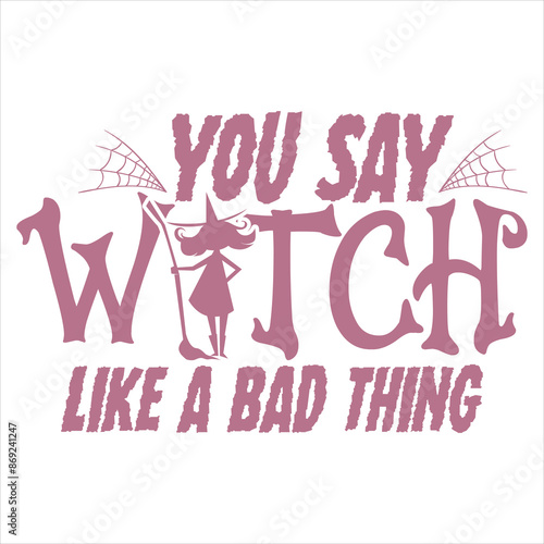 Fototapeta premium YOU SAY WITCH LIKE A BAD THING HALLOWEEN WITCH T-SHIRT DESIGN,