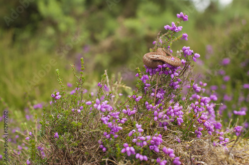 © jamiehall, Naklejka premium Young adder basking in gorse bush