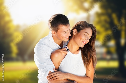 © BillionPhotos.com, Fototapeta premium Young adult happy couple hug