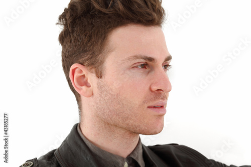 Obraz premium Young adult man posing with leather jacket
