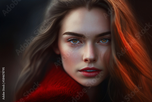 © wetzkaz, Fototapeta premium young adult woman, stylistic light, Generative AI