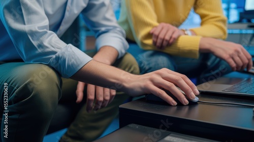 © Kostiantyn, Obraz premium Young adults collaborating on technology project in modern workspace
