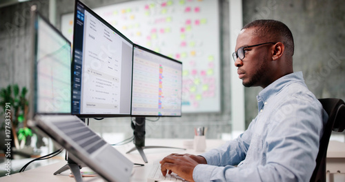 Naklejka premium Young African American Man Using Laptop