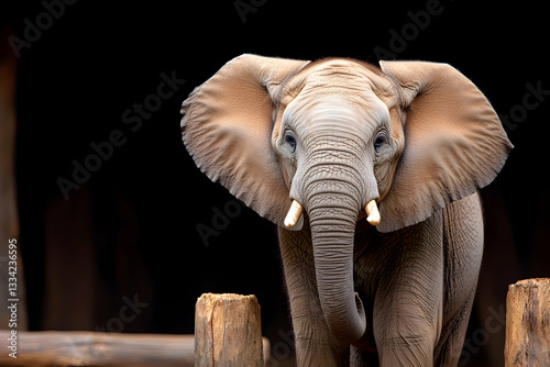 © Lailatul, Fototapeta premium Young African elephant portrait against dark background