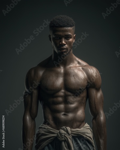 © Dr_Microbe, Fototapeta premium Young African man in casual clothing, generative ai illustration