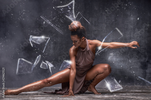 © neonshot, Obraz premium Young afro girl posing over water and glass.