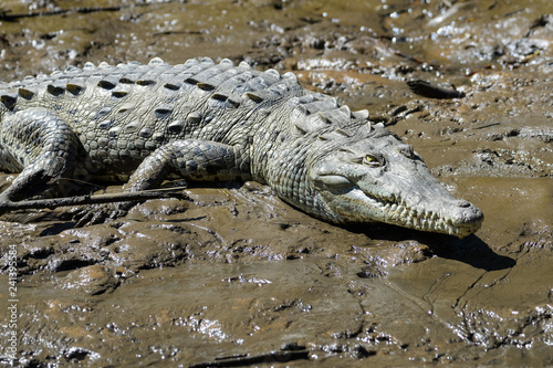 Obraz premium Young american crocodile in the mangroves of the Tarcoles river in Costa Rica