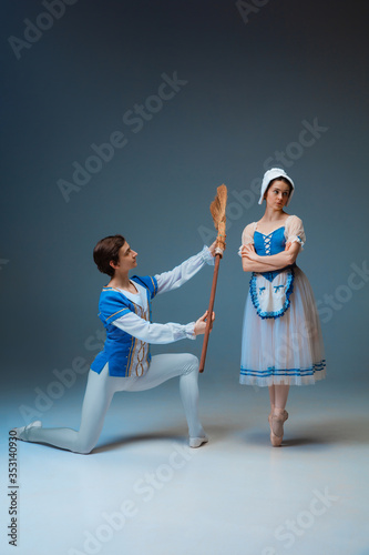 Naklejka premium Young and graceful ballet dancers as Cindrella fairytail characters on studio...