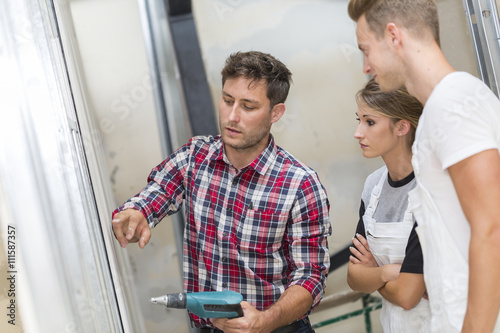Obraz premium Young apprentice with professionnal plasterer