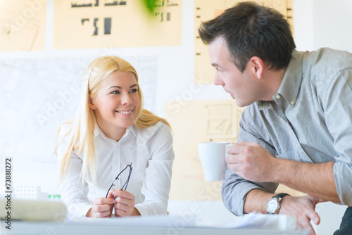 Fototapeta premium Young architects having coffee break