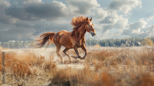 © Pat J., Fototapeta premium Young artist capturing the grace of a horse running