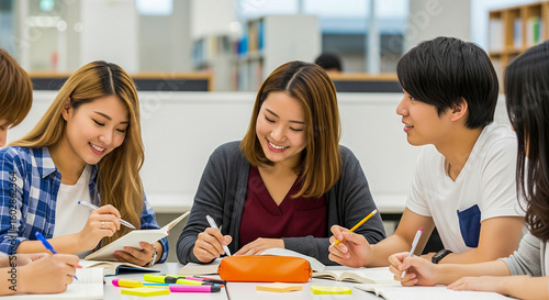 Obraz premium Young Asian Adults Study Group: Collaborative Learning & Academic Teamwork...