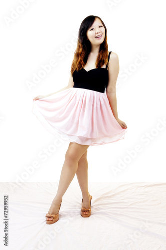 © jeffwqc, Naklejka premium Young Asian American Woman Standing Dress Shoes