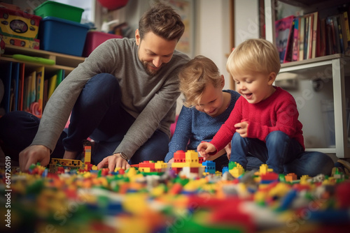 © Creative Clicks, Fototapeta premium young asian couple with their little boy playing in their room with blocks pieces