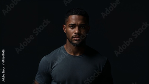 © OlgaKon, Fototapeta premium Young Asian man standing against city skyline at night_determined person in workout gear