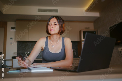 © Seleznov_Molchanova, Obraz premium young asian woman at home, remote work