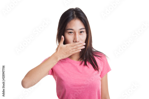 Fototapeta premium Young Asian woman close her mouth with hand