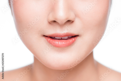 Fototapeta premium Young asian woman close up. Perfect natural lip makeup