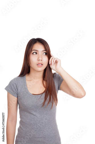 Fototapeta premium Young Asian woman is thinking