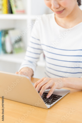 © taka, Fototapeta premium young asian woman relaxing in living room