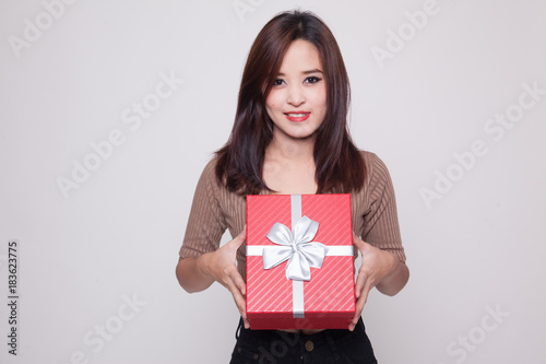 © halfbottle, Fototapeta premium Young Asian woman with a gift box.