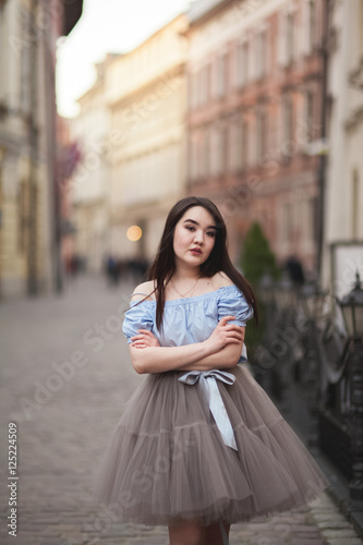 © olegparylyak, Fototapeta premium Young Asians girl with modern dress posing in an old Krakow