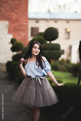 © olegparylyak, Fototapeta premium Young Asians girl with modern dress posing in an old Krakow