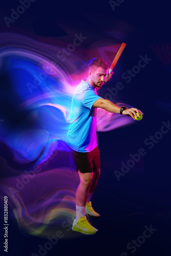 Fototapeta premium Young athlete in action preparing to hit a ball during an energetic sports...