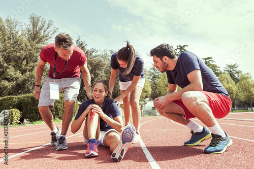 © Marino Bocelli, Obraz premium young athlete injured to knee on the track