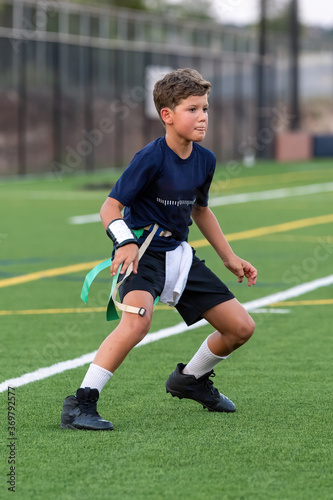 © Joe, Obraz premium Young athletic boy playing in a flag football game