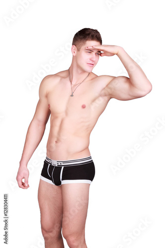 © nazarets, Fototapeta premium young athletic man in his underwear on a white background