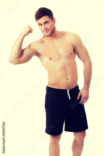 Fototapeta premium Young athletic man showing his muscles.
