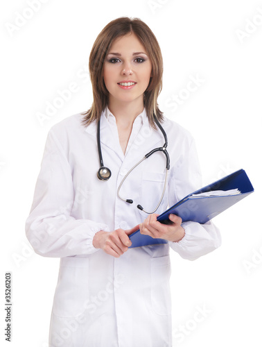 © Acronym, Fototapeta premium Young attractive doctor isolated over white background
