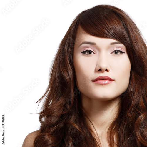 © Khorzhevska, Fototapeta premium young attractive girl portrait with long hair looking at camera