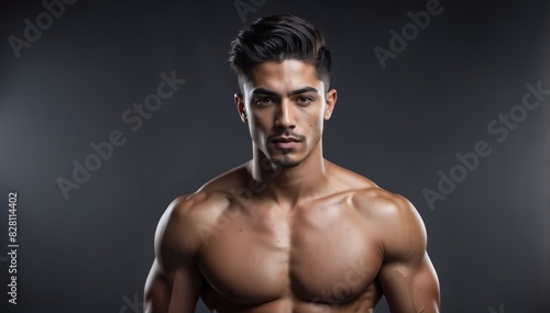 © Arceli, Fototapeta premium young attractive hispanic guy fitness trained lifestyle portrait on plain studio background