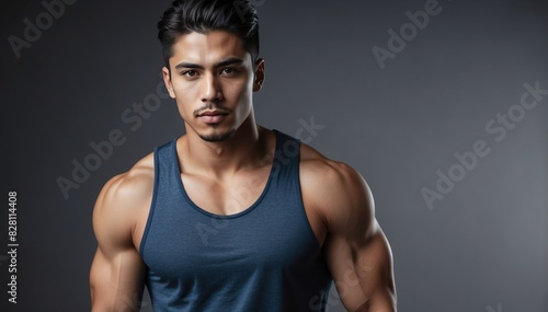© Arceli, Fototapeta premium young attractive hispanic guy fitness trained lifestyle portrait on plain studio background