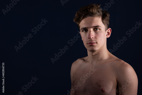 Fototapeta premium Young attractive man with athletic body posing in the studio.