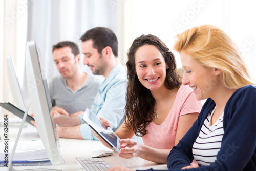 Fototapeta premium Young attractive people working together at the office