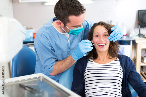 © Production Perig, Fototapeta premium Young attractive woman being cured by a dentist