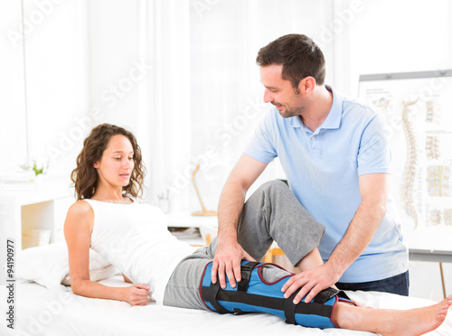 Fototapeta premium Young attractive woman being manipulated by physiotherapist