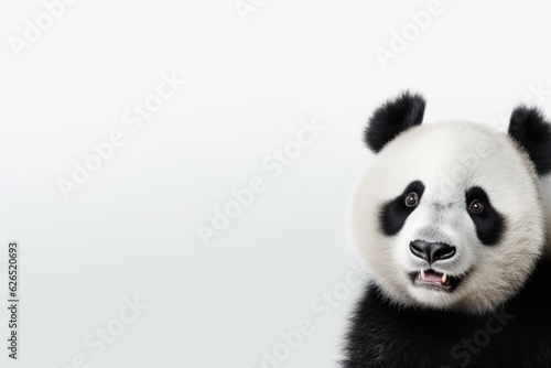 © Valery, Naklejka premium Young baby panda bear on white background, copy space, banner, minimalistic. AI generated